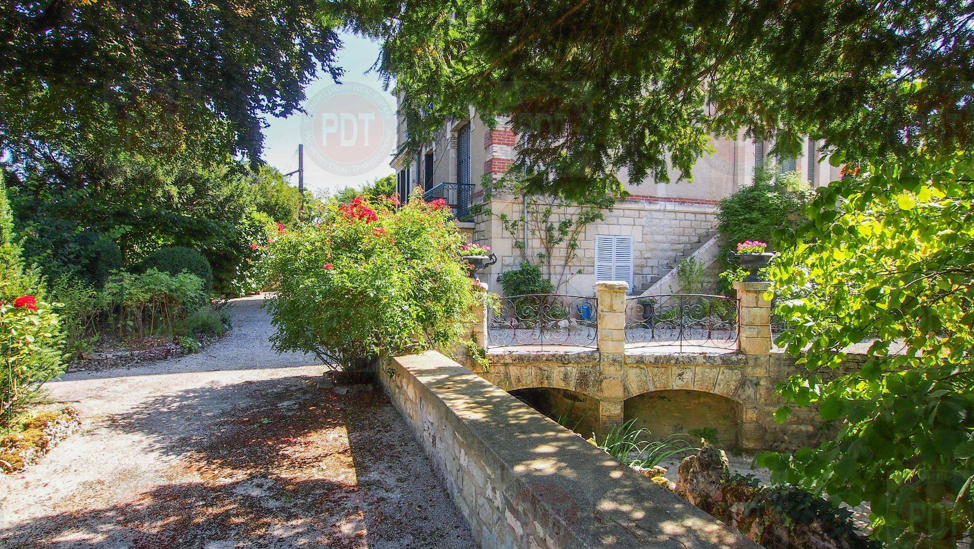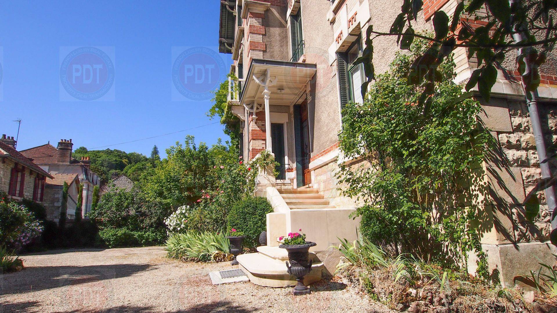 Magnifique villa d’architecte du début du 20ème siècle, à deux pas de la gare SNCF de Tonnerre. Entourée d’un très beau jardin dans lequel passe un petit ru, cette ravissante villa a gardé le charme des constructions de l’époque. Ses grands arbres centenaires, son puits, son pigeonnier, son lavoir, sa maison de jardin, son pavillon indépendant en font un lieu unique. En plein centre de la ville, cette propriété très lumineuse bénéficie d’un environnement calme et verdoyant dans le secteur le plus résidentiel de la ville. La maison d’habitation, pour environ 315 m2 habitables comprend au rez de chaussée : Un grand vestibule desservant un grand salon avec terrasse, un petit salon avec cheminée pour poêle à bois et un balcon , une salle à manger, cheminée feu de bois, des toilettes avec lave main, un petit placard, une cuisine. Au premier étage : Un grand palier desservant un bureau, une petite chambre, une grande chambre avec cheminée pour poêle à bois et une salle de bains attenante avec WC, deux chambres, un cabinet de toilette. Au second étage : Trois  chambres, une petite chambre, une salle de bain, des toilettes avec lave main, un grenier. Au sous-sol : un garage, une ancienne cuisine avec évier, une pièce avec la chaudière et accès au vide sanitaire, chambre d’appoint avec lave main, atelier, pièces de rangement. En dépendances : Un pavillon pour une surface d’environ 46 m2 comprenant trois pièces à l’étage et au rez de chaussée : un garage, un atelier  et des toilettes, entrée indépendante de la maison principale, un pigeonnier, une maison de jardinier, une cave semi enterrée, un jardin fleuri et arboré, un puits, un ru rejoignant l’Armançon, un ancien lavoir. La maison est équipée d’un chauffage central au fuel et est raccordée au réseau d’assainissement communal. Elle est en bon état et demande quelques travaux d’électricité et de petites rénovations. A moins de 2h de Paris en TER, petite ville tous commerces, activités culturelles et patrimoine bourguignon.